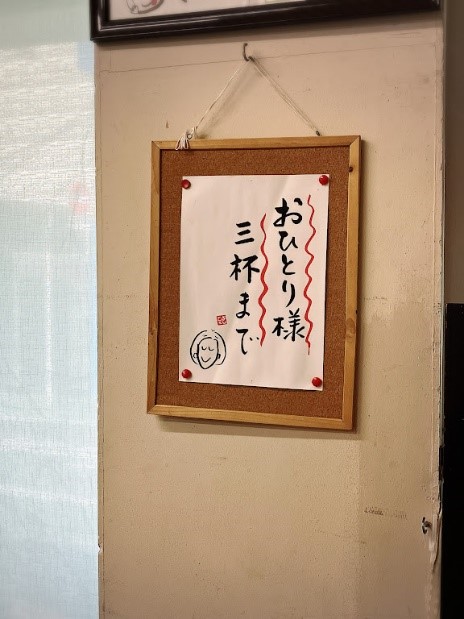 みなさんに楽しくお酒を飲んで欲しいと言う願いを込めて、手書きの笑い文字があたたかい雰囲気は、お一人様でも入りやすいです。