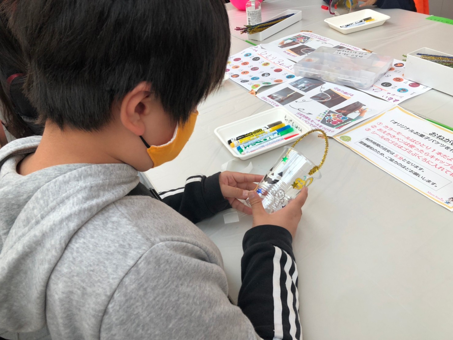 フォトブースと一緒に大人気!大盛況の列となった、お菓子バケツのワークショップ!
