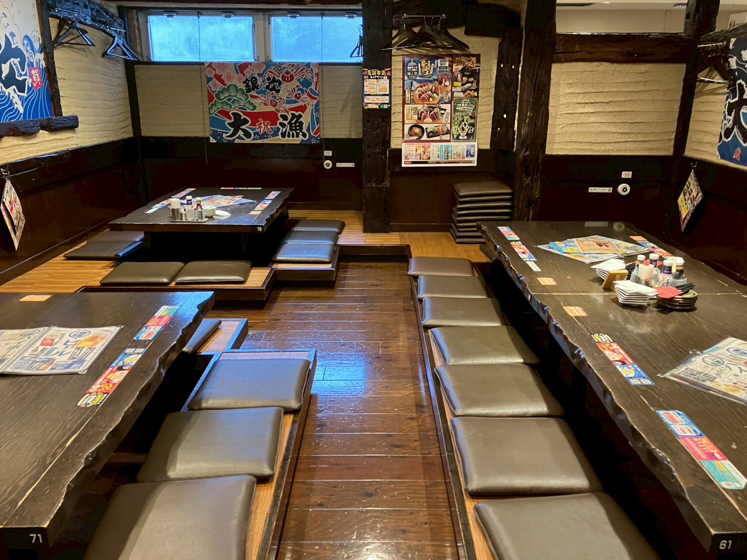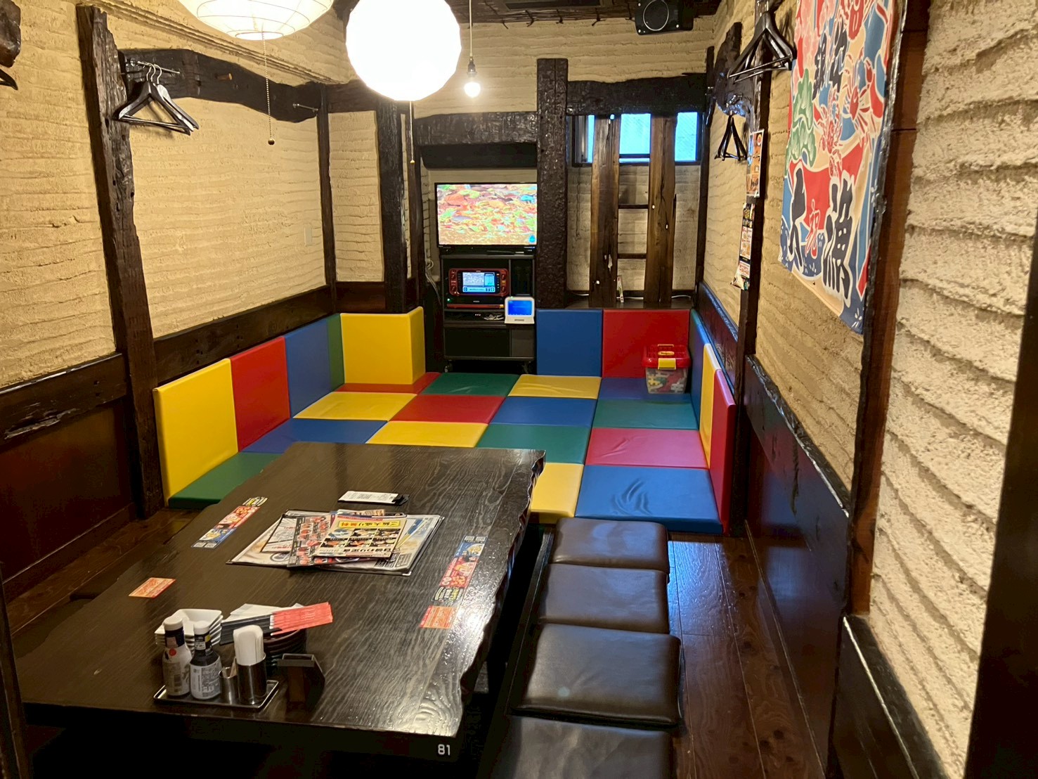 ・席:一般テーブル席19卓、団体席4卓、カラオケ・キッズスペース付きルーム(個室)1卓(定員14名・大人のみの場合は8名が推奨)