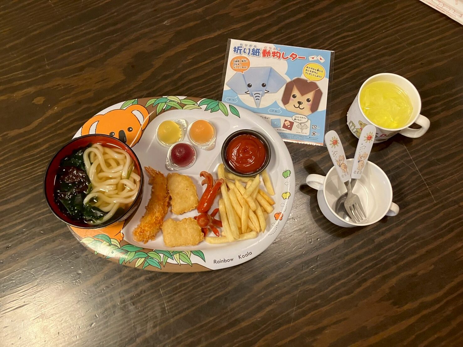 おこさまセット、おこさま限定ソフトドリンク(単品)飲み放題もあります。カトラリーも借りられます。