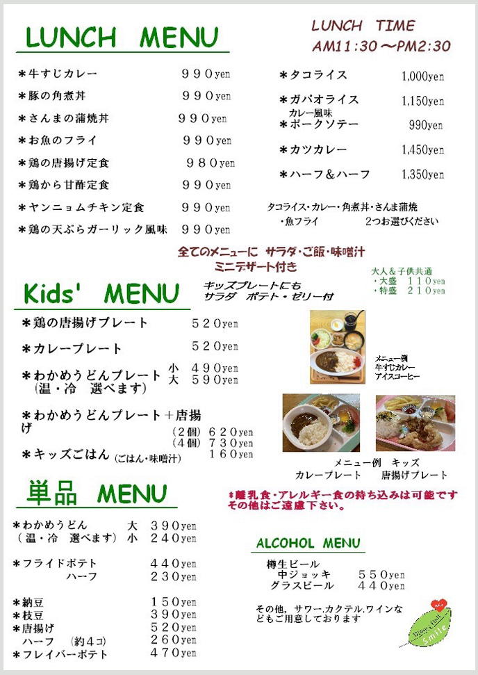 豊富なメニューや子ども用アイテムは、すべてお客さんの“あったらいいな”の声から生まれたもの。 「お客さんみんなが“スマイル”をつくっているんです」とスタッフさんが話してくれました。