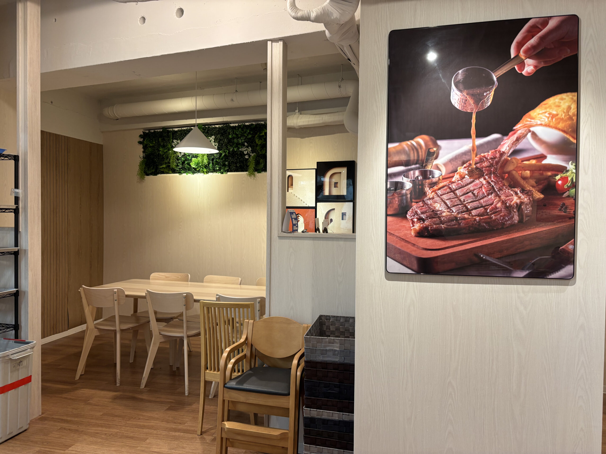 入口すぐの大きなロゴや各所に飾られた写真が、店内の雰囲気をより魅力的に演出しています。